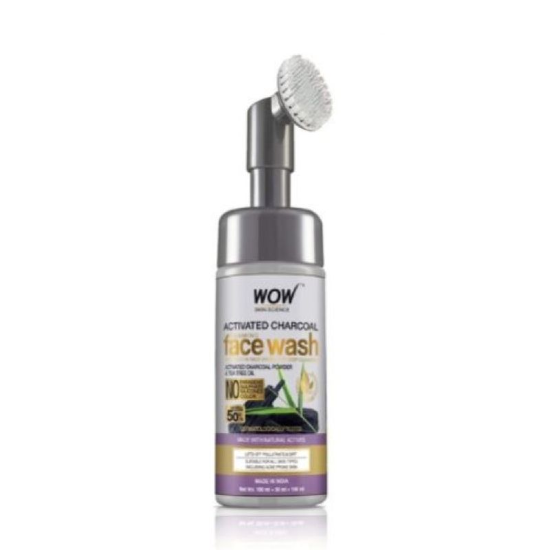 WOW Skin Science Charcoal Foaming Face Wash | Built in Brush for Deep Cleansing | All Skin Types | Fresh, Clear Skin | Paraben & Sulphates Free | For Women & Men - 150 Ml